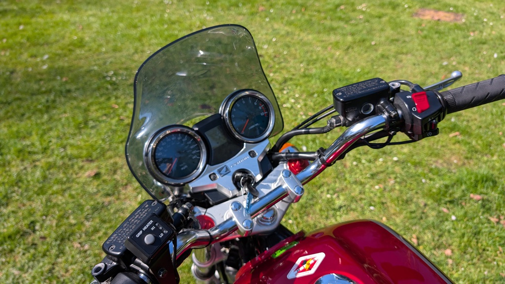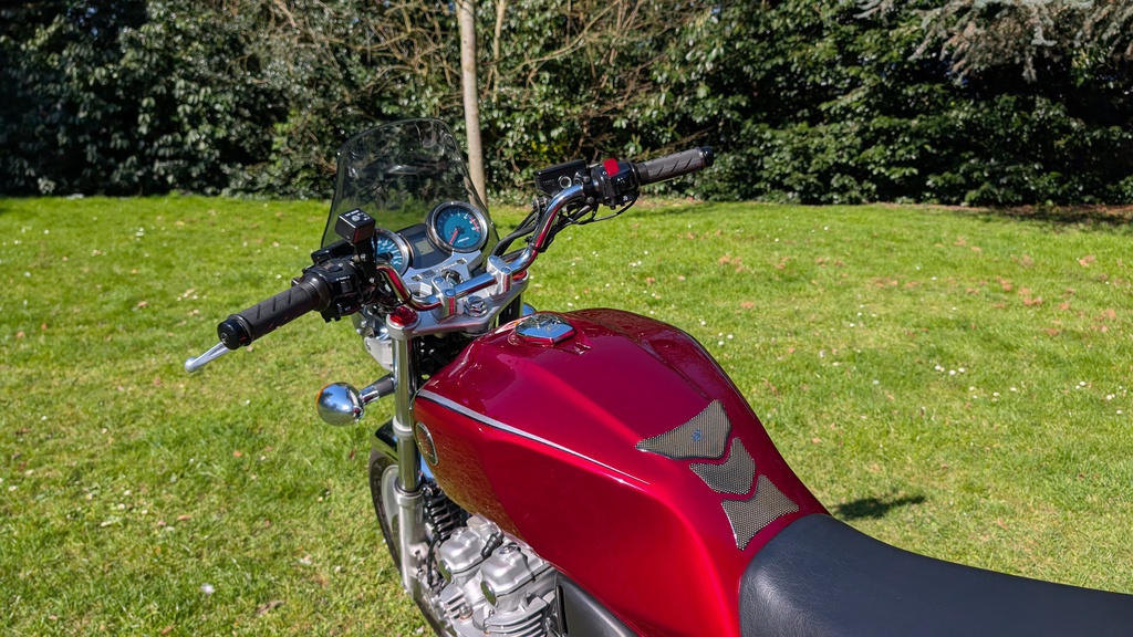 Here we have this stunning 2013 Honda CB1100. Completely originally example and credit to its predecessors always garaged and only used in fair weather. Finished in beautiful metallic red this is a wonderful looking and riding motorcycle, has to be the best of its kind incredible condition throughout .Untouched example with the added bonus of heated grips for those winter months.